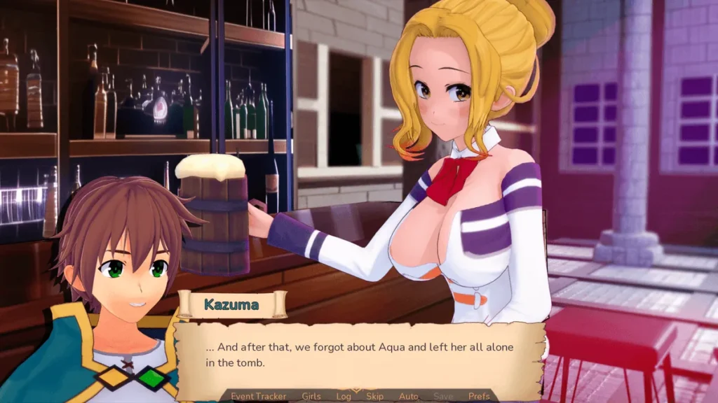 The game leans hard into the parody, presenting a world where guild receptionists are overworked, quests are stupidly dangerous, and everyone is kind of a mess. The Konosuba parody visual novel elements shine in every story beat and comedic aside. Seeing these characters navigate not just epic quests, but also part-time jobs and mundane town life—filtered through the game’s adult-oriented lens—is a constant delight. It takes the franchise’s core premise of “terrible people in a fantasy world” and runs with it in a wonderfully interactive way.